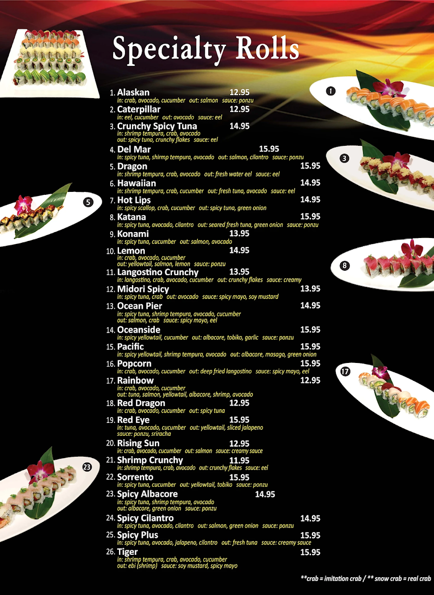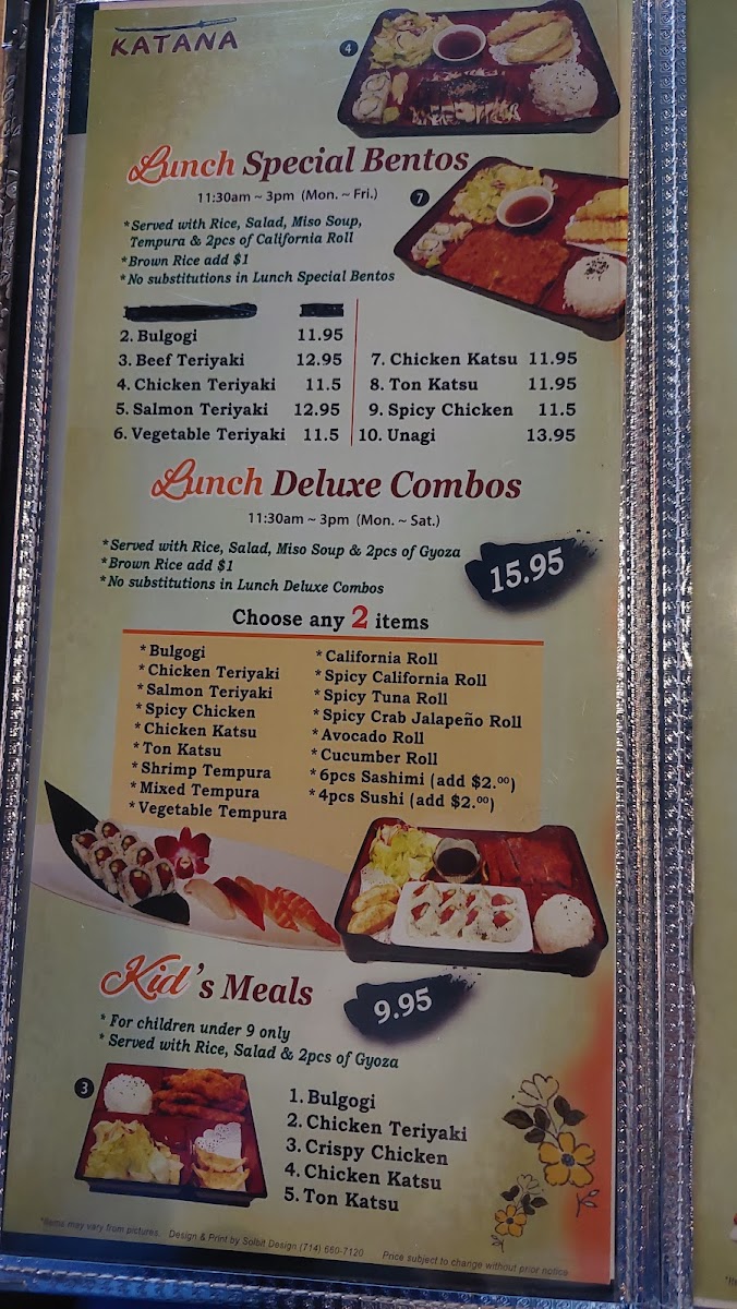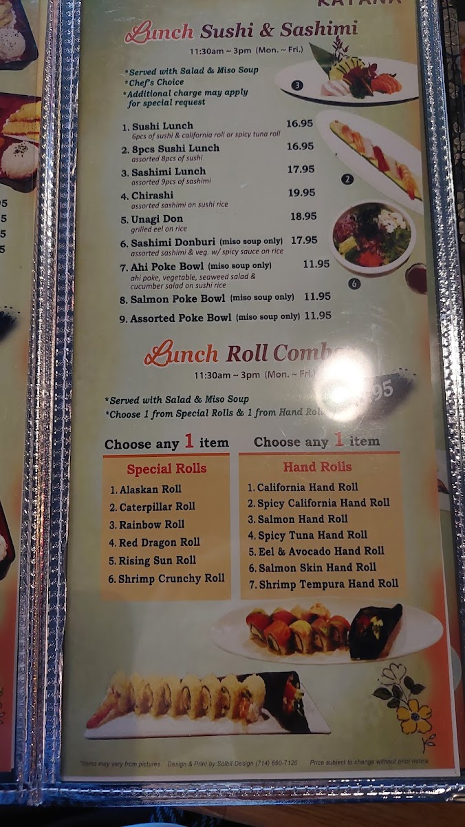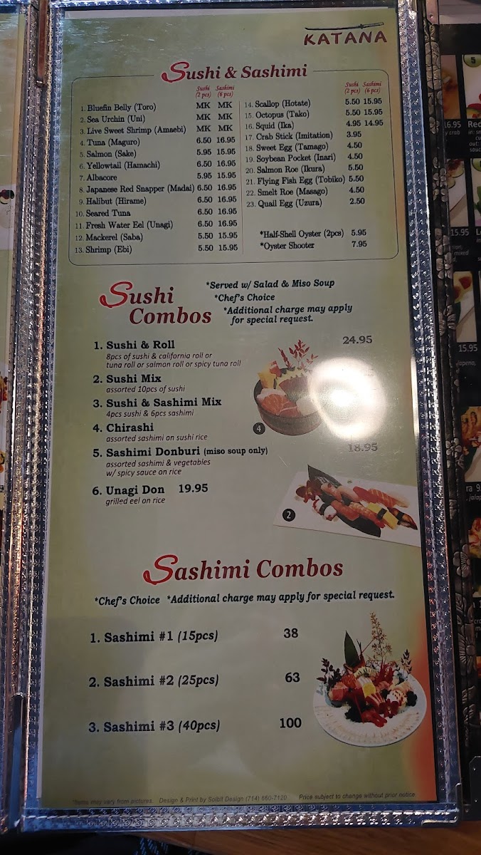 Welcome to Katana Sushi & Japanese Restaurant, a hidden gem nestled in San Diego's Carmel Valley, where culinary artistry meets authentic Japanese flavors. The menu is a delightful blend of traditional sushi and comforting noodles, ensuring every guest finds something to savor.
